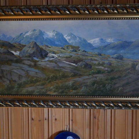 Maleri er i god stand, rammen har et par merker.