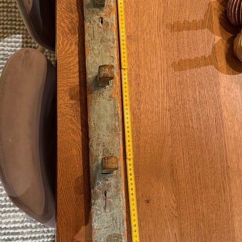 Antikk trekiste med metallbeslag og lås, 91 cm lengde, 47 cm bredde, 52,5 cm høy