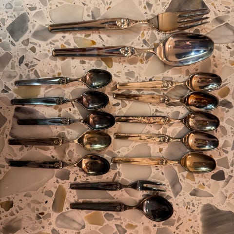 Som normalt for sølv som har vært lagret over tid, har delene noe overflateoksidasjon og trenger puss – dette er kun kosmetisk og enkelt å gjøre.