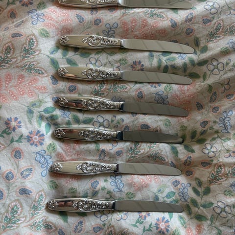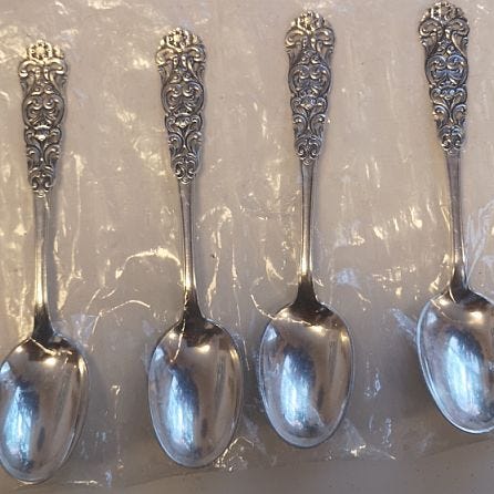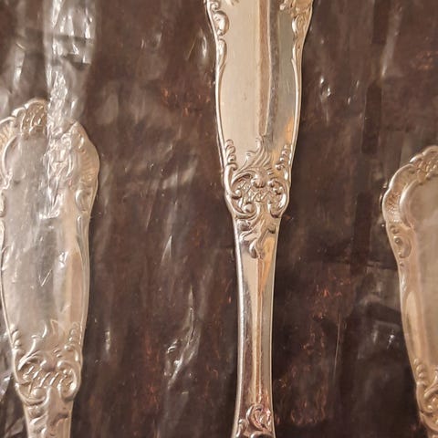Elisabeth ubrukte kaffeskjeer og gafler i sølv – selges samlet