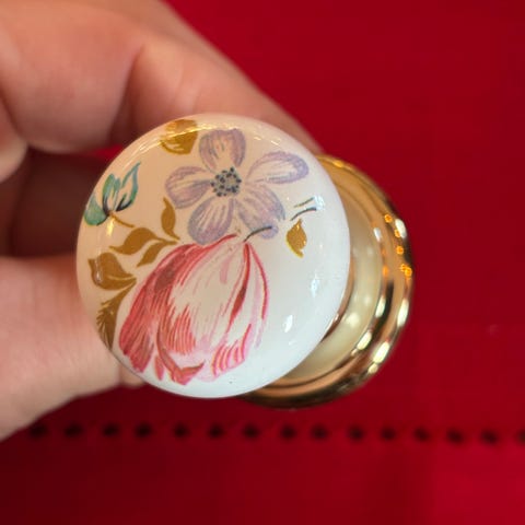 Hvit knott med blå blomst til skap/skuff. Nye.
