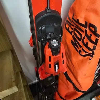 Pent brukt Atomic Redster SL racing hjelm med bøyle og briller.