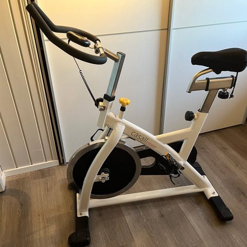 Abilica Voyage treningssykkel med digitalt display som viser tid, hastighet, distanse, kaloriforbruk og puls. Utstyrt med flere treningsprogrammer og justerbare motstandsnivåer.