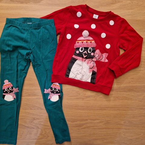 Noe i str 98/104 og noe i 110/116, alt er brukt samtidig. 2 av alt.