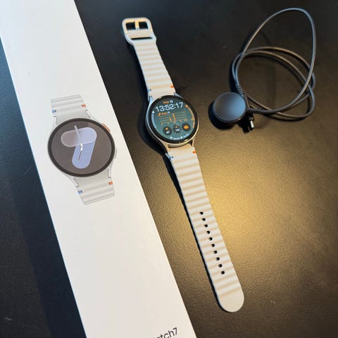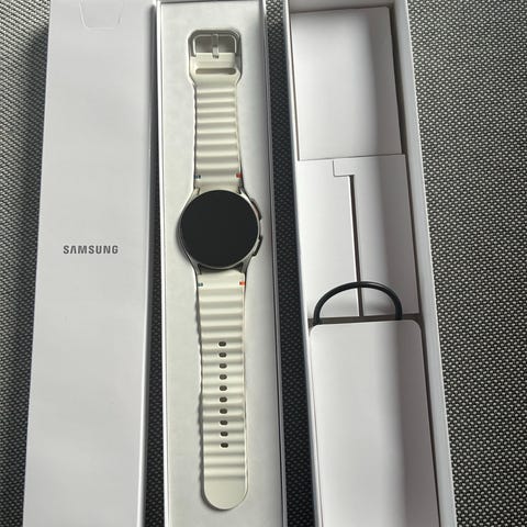Helt ny og ubrukt Samsung Galaxy Watch7 smartklokke i "cream" farge, 40 mm bredde, BT-versjon.