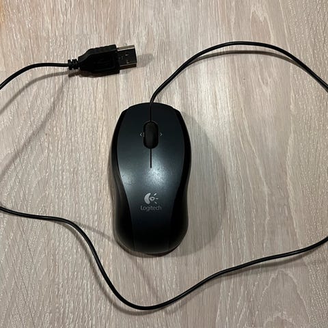 Logitech trådløs datamus tilleggsutstyr med USB-mottaker og batteri. Svart farge, ergonomisk design for komfortabel bruk. Passer til ulike datamaskiner som ekstrautstyr.