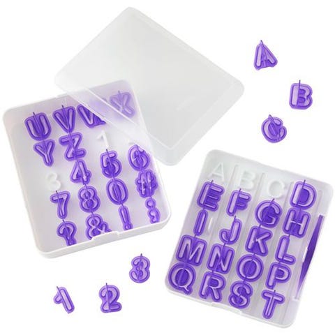 Jeg selger et praktisk sett med alfabetstempler/embossere til kaker og cookies.