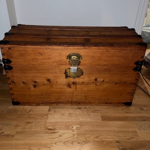 Antikk blå tre kiste