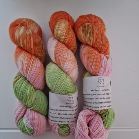 Garnet er i 100% ull med lanolin. Det er gradient farget. Selges samlet for 75,-