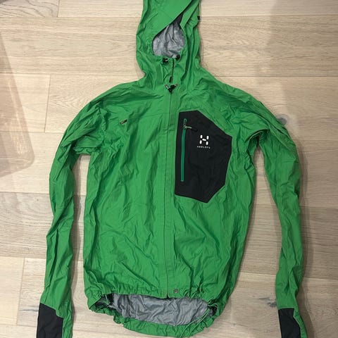 Haglöfs Anorakk jakke i størrelse M, designet for fottur. Jakken er grønn/brun med rosa detaljer. Den er laget for utendørs bruk med funksjonelle lommer og hette. Selges da jeg ikke bruker den, kun brukt et par ganger!