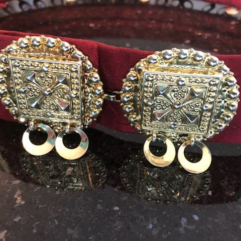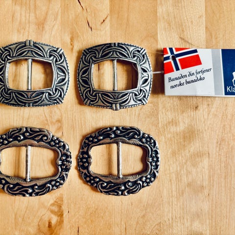 Står montert på bunadsko i str 39, fra Kalvenes. Disse kan følge med.