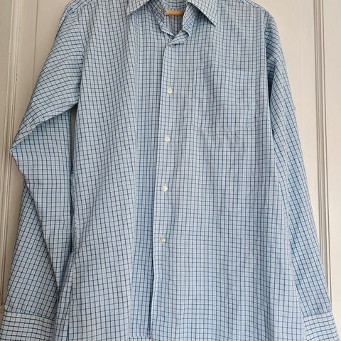 Ny blåstripete skjorte i uåpnet emballasje. Skjorten er fra Van Heusen i størrelse 39 1/2 medium. Produsert i England.