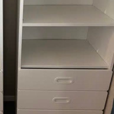 IKEA Småstad oppbevaring med skuff. Lange håndtak som er lette å få tak i for store og små. Noen synlige merker, men disse er små. Plass til masse leker/bøker eller annet.