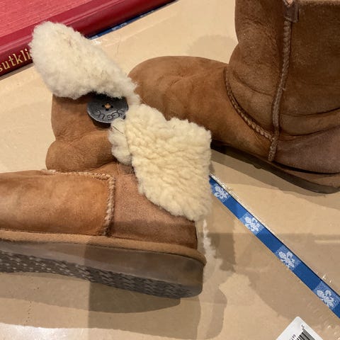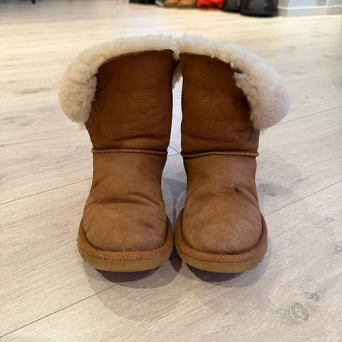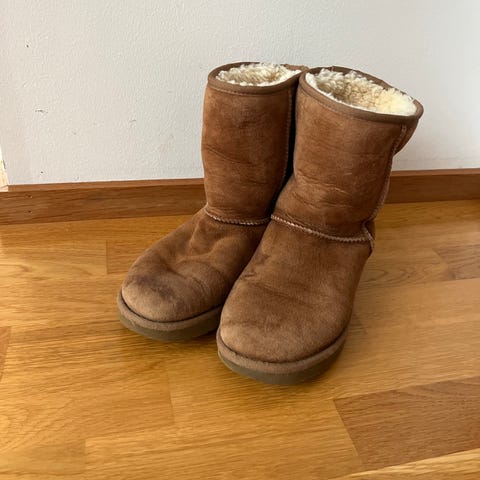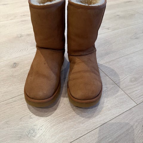 UGG vinterstøvler i størrelse 38, brun farge. Støvlene har en myk og varm innside som gir god isolasjon mot kulde. Yttersålen er laget for godt grep og holdbarhet. Egnet for bruk i kalde værforhold.