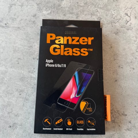 PanzerGlass skjermbeskytter for Apple iPhone 6, 7, 8 og SE 2020 modeller. Beskytter skjermen mot riper og støt, laget av herdet glass for økt holdbarhet.
