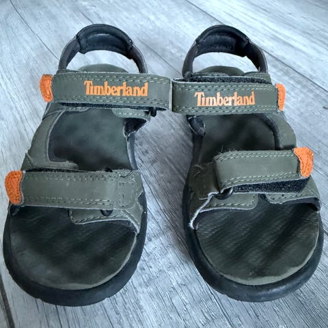 Timberland barnesandal for gutt i størrelse 35. Sandalen er grønn med justerbare borrelåsstropper og hvit såle. Egnet for utendørs bruk og gir god komfort og støtte. Pent og lite brukt Selges til oppgitt pris.