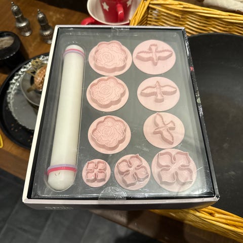 Bakeglad? Jeg selger et praktisk fondant-stempelsett (43 deler) som passer til både kaker, kjeks og dekor. Flott for deg som liker å pynte fondant, marsipan eller lage detaljerte mønstre.