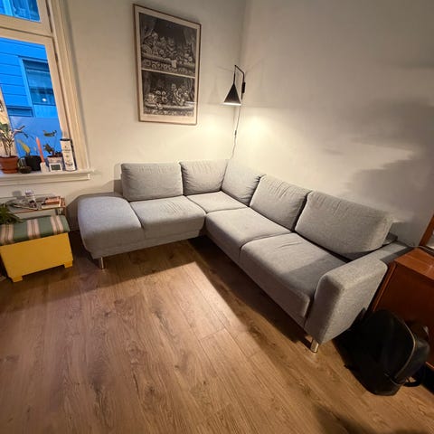 Selger en godt brukt modulsofa med avtagbart grått trekk og dobbel sjeselong! Sofaen er god å sitte i og selges grunnet kjøp av ny hjørnesofa.