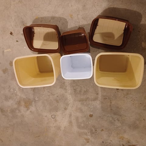 Tønne med lokk 50 L med en bulk og trenger en liten vask. Brukt til å oppbevare hønsemat, men kan også brukes til å oppbevare hund- og katte fòr.