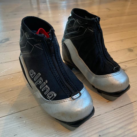 To par smørefrie langrennsski (127, 122 cm) + tre par staver (98, 86, og 80 cm)