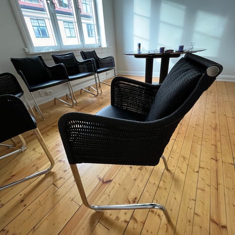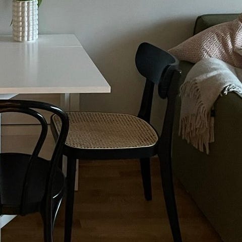 Spisegruppe fra ellos, kjøpt nytt for fem år siden. Alt selges samlet. Bordet er i relativt god stand, uten noen synlige merker. Stolene er mer synlig bruk i sete, men ingen merker i stoffet. Kan enkelt demonteres. Må hentes her