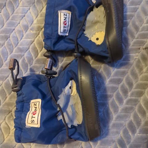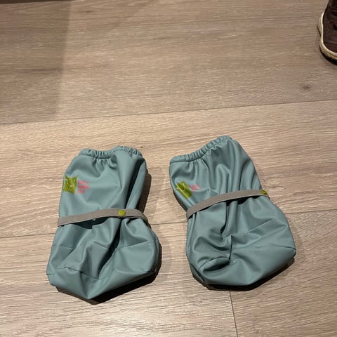 Selger et pent og svært lite brukt par regnsokker fra Kattnakken. Alt er inntakt, strikk, knapper, fleece. Kunne nesten sett helt nye ut, med unntak av ubetydelig merke på undersiden som er der hvor barnet går, se vedlagte bilder.