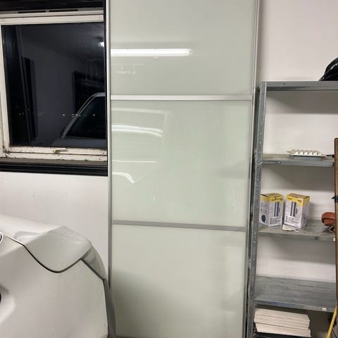 Elfa skyvedørsgarderobe med 3 dører og skinner