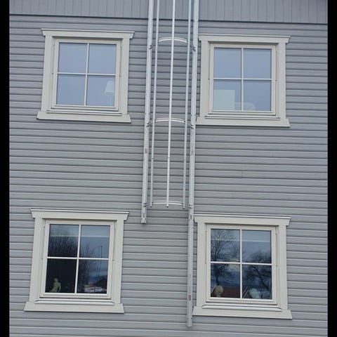 To stk Norgesstigen 4 m rømningsstige som monteres på vegg.