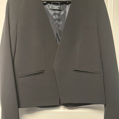 Mango Blazer og bukse i beige farge, laget av lin. Passer dame i størrelse Medium. Nydelig flatterende passform. Brukt 1 gang. Kjøpt for spesiell anledning. Nyrenset, men en markering nede på buksen. Denne er ikke forsøkt fjernet da dressen har hengt i plast etter rensing.