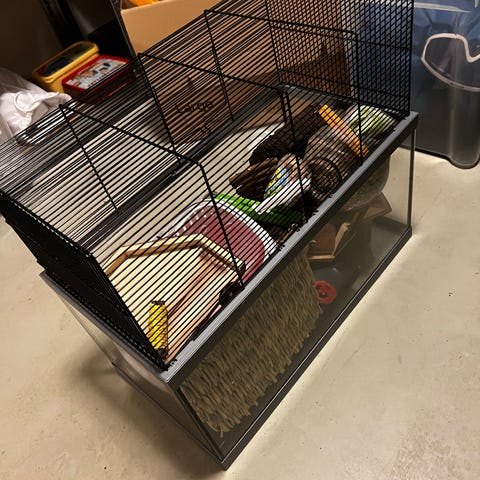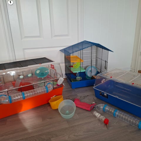 Inkluderer flere tilbehør som tunneler, matskåler og hus i plast og tre. Egnet for små kjæledyr som hamstere eller mus.