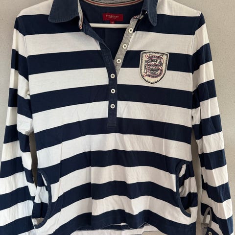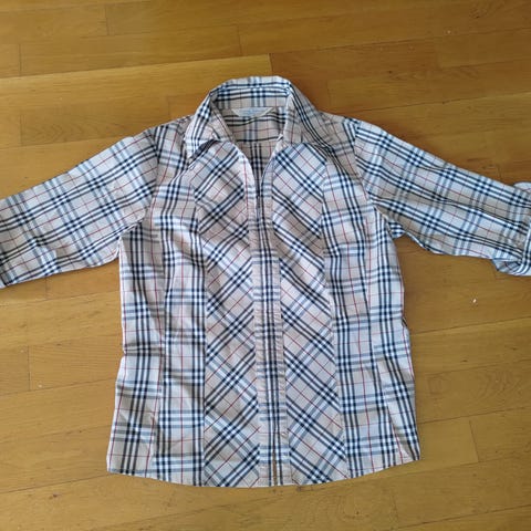 Burberry skjorte i svart farge, størrelse 42 for dame. Laget av 100% bomull. Har karakteristisk Burberry mønster på innsiden av kragen og knappestolpen.