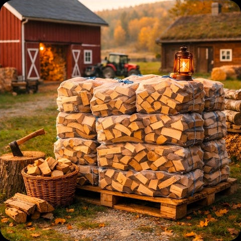 Tørr og fin Bjørkeved selges i 60L sekker