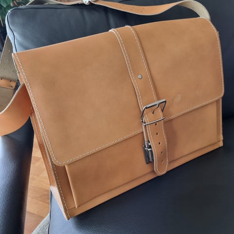 Lite brukt skulderveske i mykt skinn, kjøpt i Lisboa