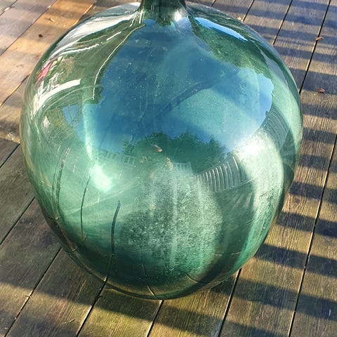 To gamle vinballonger i stativ selges.