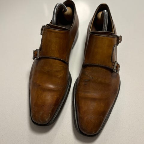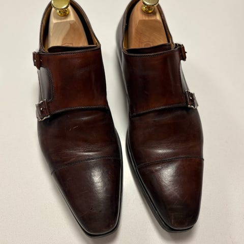 Brune dobbeltspente monkstraps fra Magnanni med gummisåle.