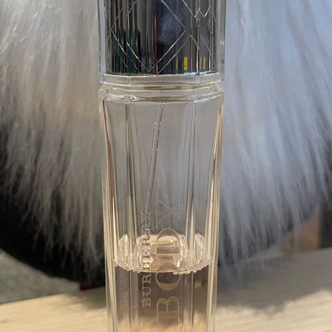 Burberry Body Eau de Parfum Intense i 60 ml flaske. Ca 25 ml igjen i flasken. Parfymen har en klar væske og kommer i en gjennomsiktig flaske med sølvfarget hette. Produktet er beregnet for bruk som duft.