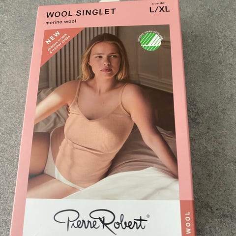 Ny og ubrukt Pierre Robert Sport Wool T-skjorte i størrelse XL for kvinner. T-skjorten er laget av 100% merinoull i fargen Green Melange.