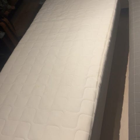 IKEA sultan rammemadrass og overmadrass. Det ene benet er løst pga mangler skrue. Gis bort mot henting.