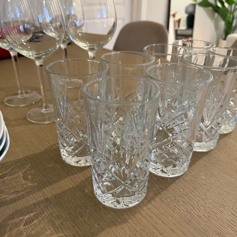 5 stk. vinglass (ev. til annen bruk) gis bort. Klart glass med stett og klassisk form. Høyde ca. 14/14,5 cm, diameter ca. 6,5/7 cm. Hentes i Oslo.