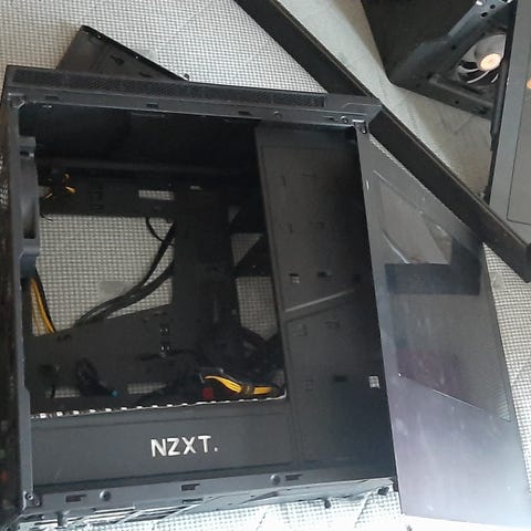 Selger et Phanteks PC-kabinett med glasspanel. Følger med skuffer og lommer til SSD/HDD, led list og 2 stk vifter. Har et merke/skrape i front, men ellers veldig fint.