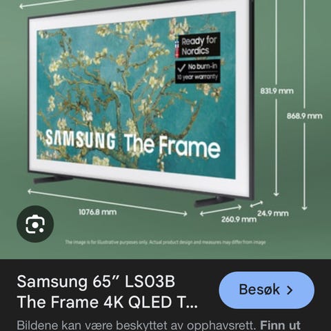 Sorger en pent brukt Samsung The Frame i Strl. 55 tommer da jeg har oppgradert til 75 tommer.
