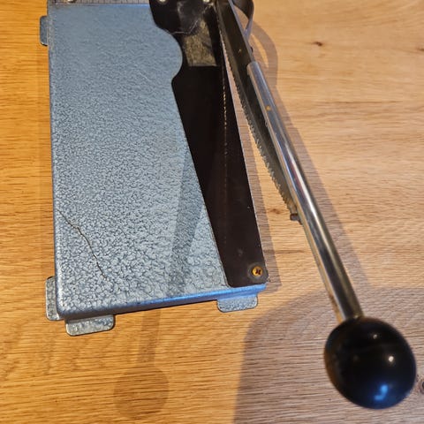 Trykte skjæremål og gradskive som gir eksakte mål. Antigliføtter på undersiden gjør at skjæremaskinen står stødig.