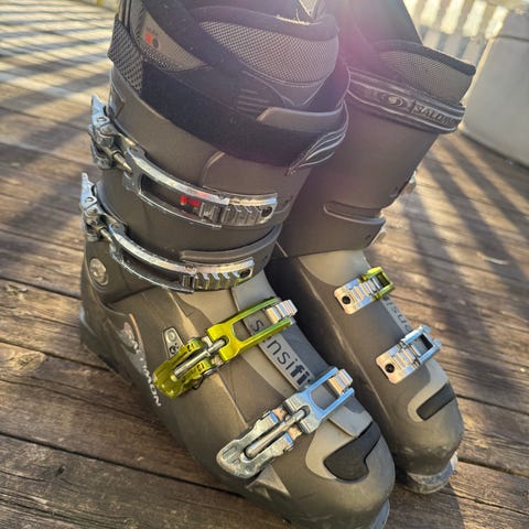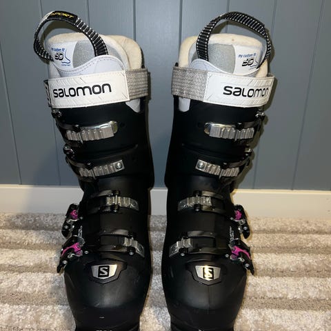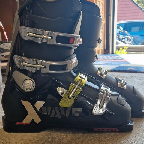 Et par Salomon X-Wave 8.0 skistøvler. Har Salomons Spaceframe-teknologi, som er utviklet for å myke opp den ytre delen av skallet for presisjon og flyt i svinger. Forsterket vrist beregnet for forbedret kraftoverføring.