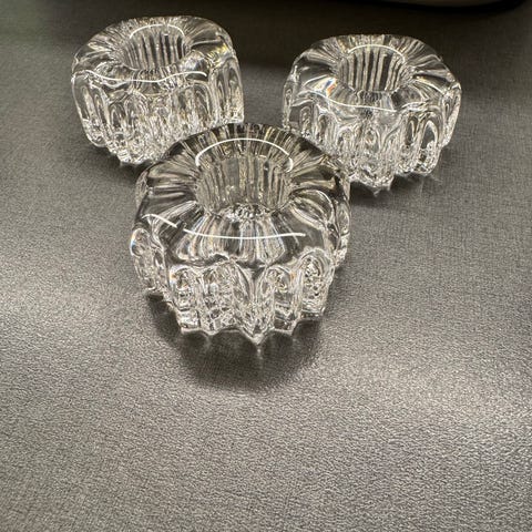Til krones-lys, den ene er 3 cm høy, den andre er 2 cm høy. Begge er 7 cm i diameter.