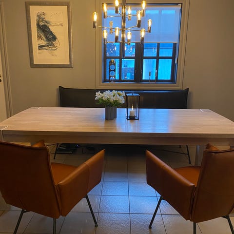 Solid spisebord med 6 stoler