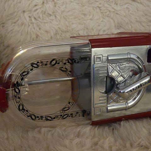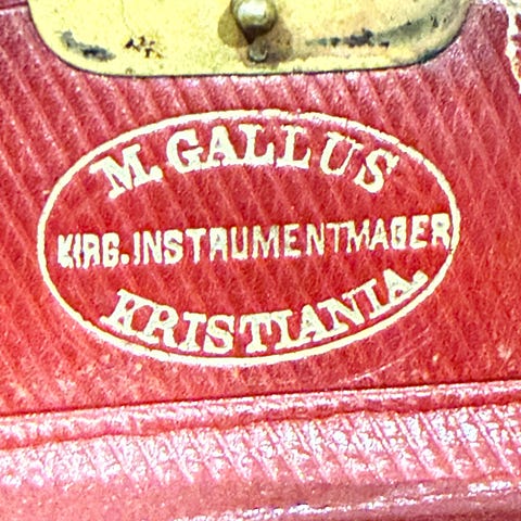 Instrumentet leveres i original blå fløyelsforet eske med bruksanvisning. På stempelet står det britisk, amerikansk og kanadisk patent, noe som indikerer produksjon rundt 1940–1950-tallet.