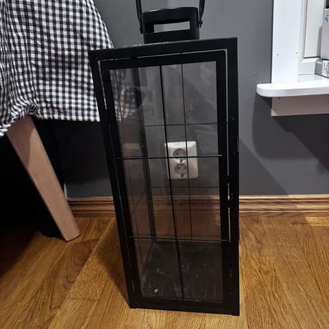 &Tradition dekorasjonslanterne laget av glass og metall. Lanterne har en gjennomsiktig glasskuppel og en svart metallbase med håndtak. Egnet som dekorasjon i hjemmet.