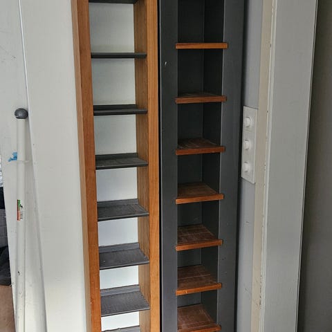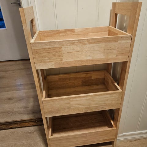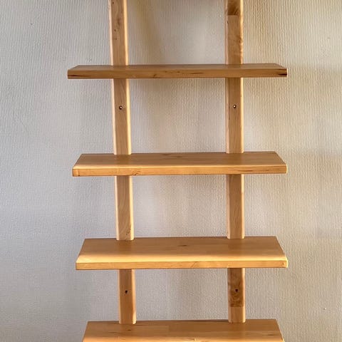 2 stk IKEA CD-hyller laget i lyst tre med flere hyller for oppbevaring av CD-er eller andre små gjenstander. Hyllehøyde kan justeres. Passer til oppbevaring i hjemmet eller kontoret. Kr. 500 totalt for begge hyllene.