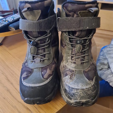 Merrell grove joggesko/tursko. Vanntette. Vibram-såle med godt grep. Damemodell, men brukt som barnesko. Pent brukt.