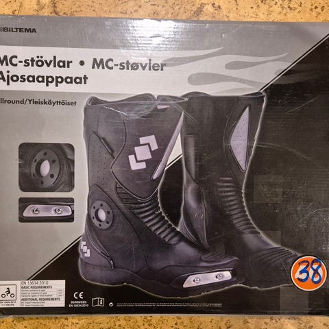 Helt nye MC-Støvler i størrelse 41 selges billig da det ikke ble noe MC kjøp. Kun åpnet og tatt ut av plasten for å ta bilde.